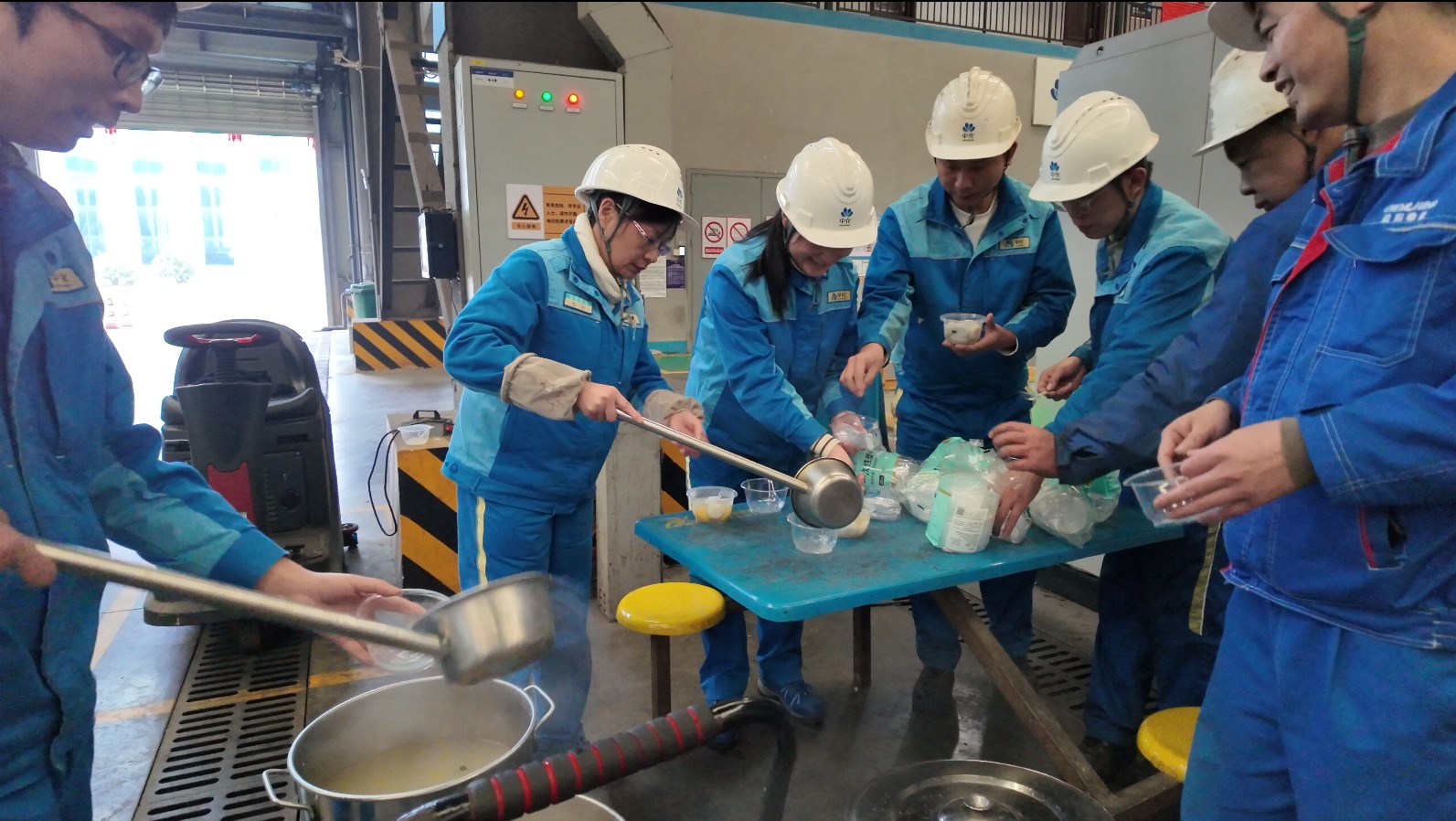 下午,食堂工作人员便开始忙碌,将象征团圆的汤圆下锅煮熟。随后将一碗碗热气腾腾的汤圆送至职工工作台。接过汤圆,职工们脸上洋溢着惊喜与幸福。