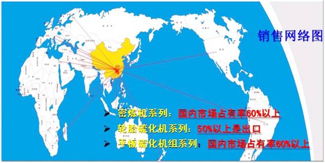Our leading products are exported to more than 40 developed countries, including Japan, America, Britain, France, Italy, Germany, Russia, Brazil, and Thailand. The company is now a major Chinese export base for rubber machinery products.