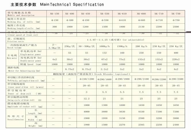 It consists of rollers, a frame, a gland, transmission device, electric nip regulating device, lubricator, roller temperature regulator, and a braking device. The main motor drives the reducer, and the coupling rotates the two rollers. Their speed and speed ratio are adjustable depending on the process requirements.