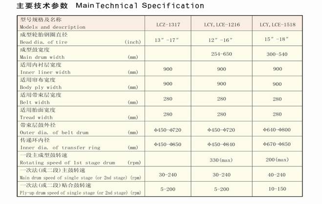 Single-stage/Two-stage Radial Tire Machine Technical Parameters